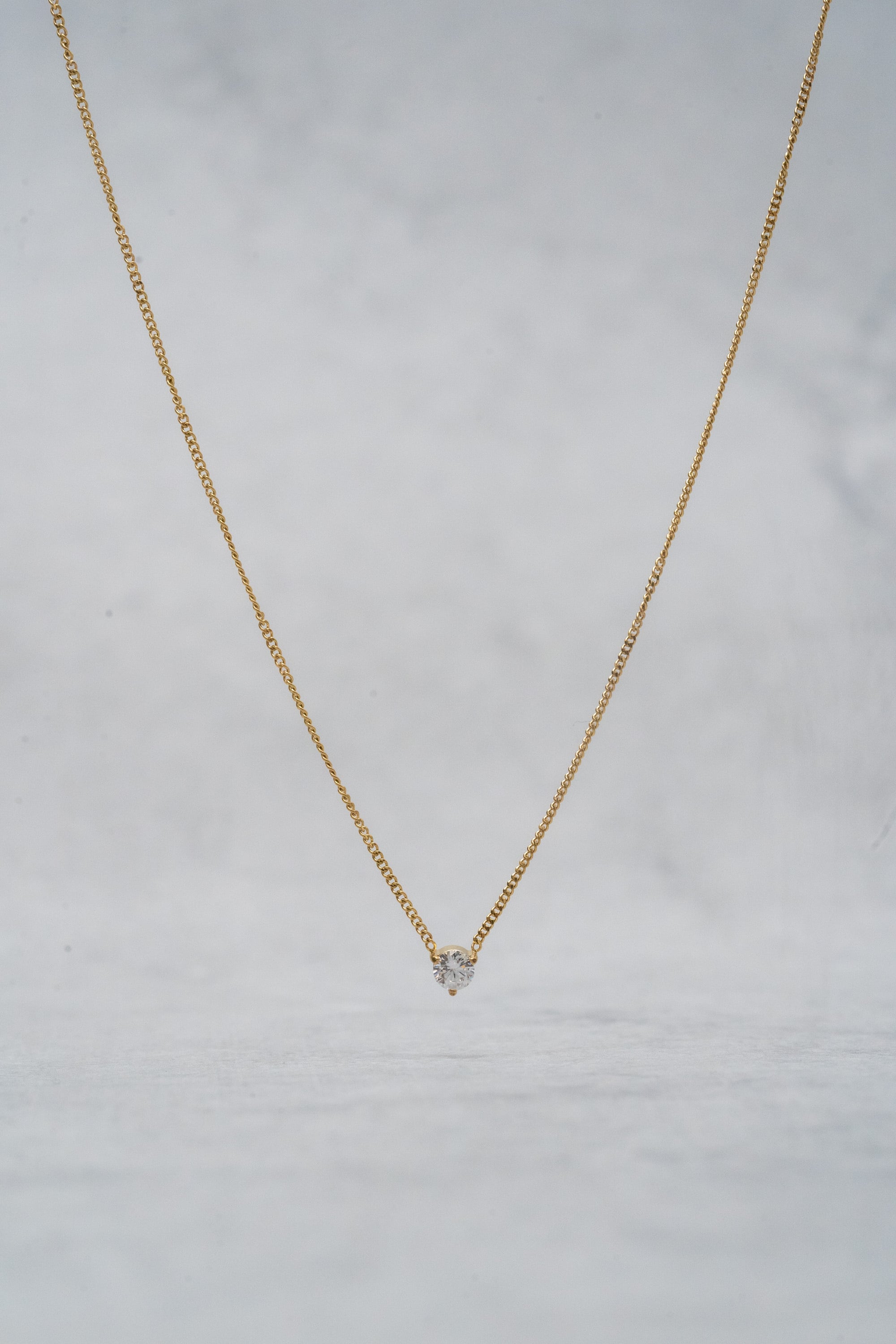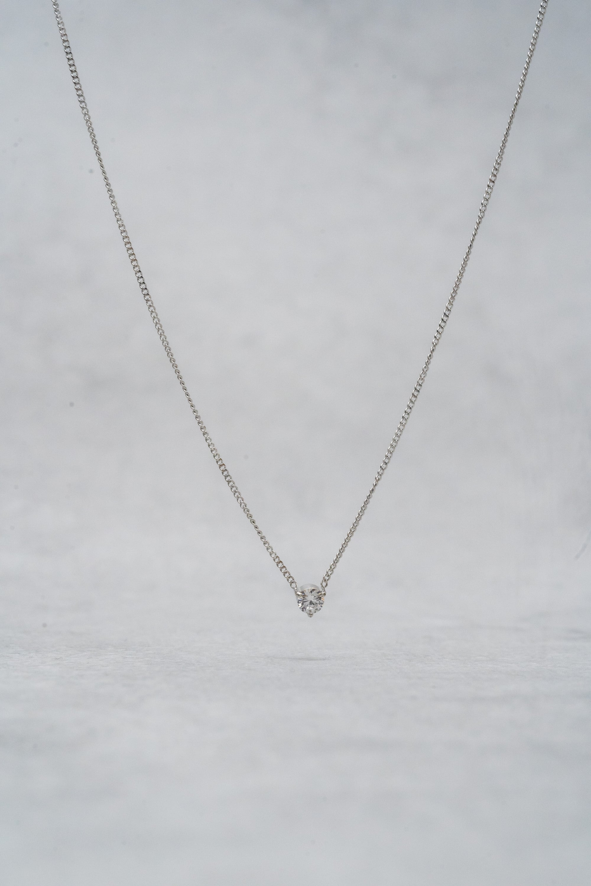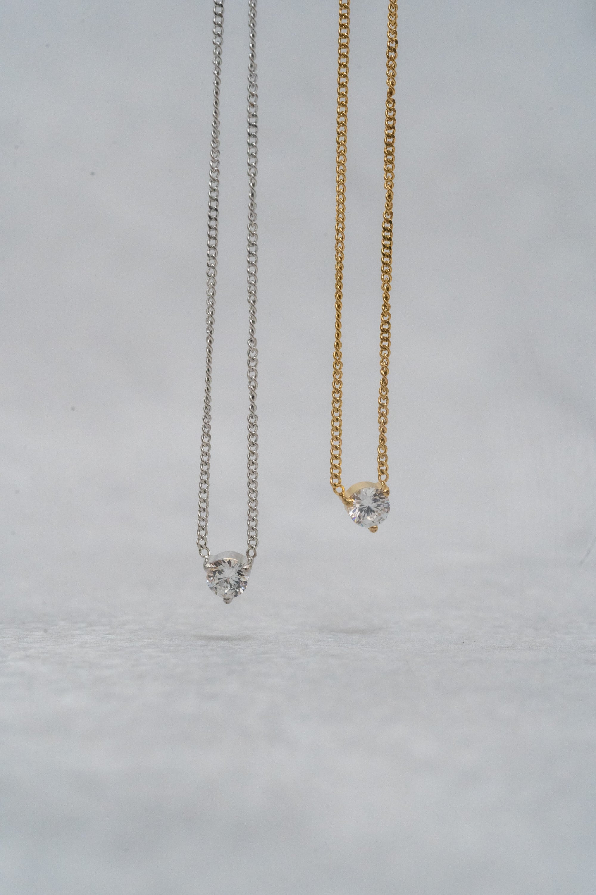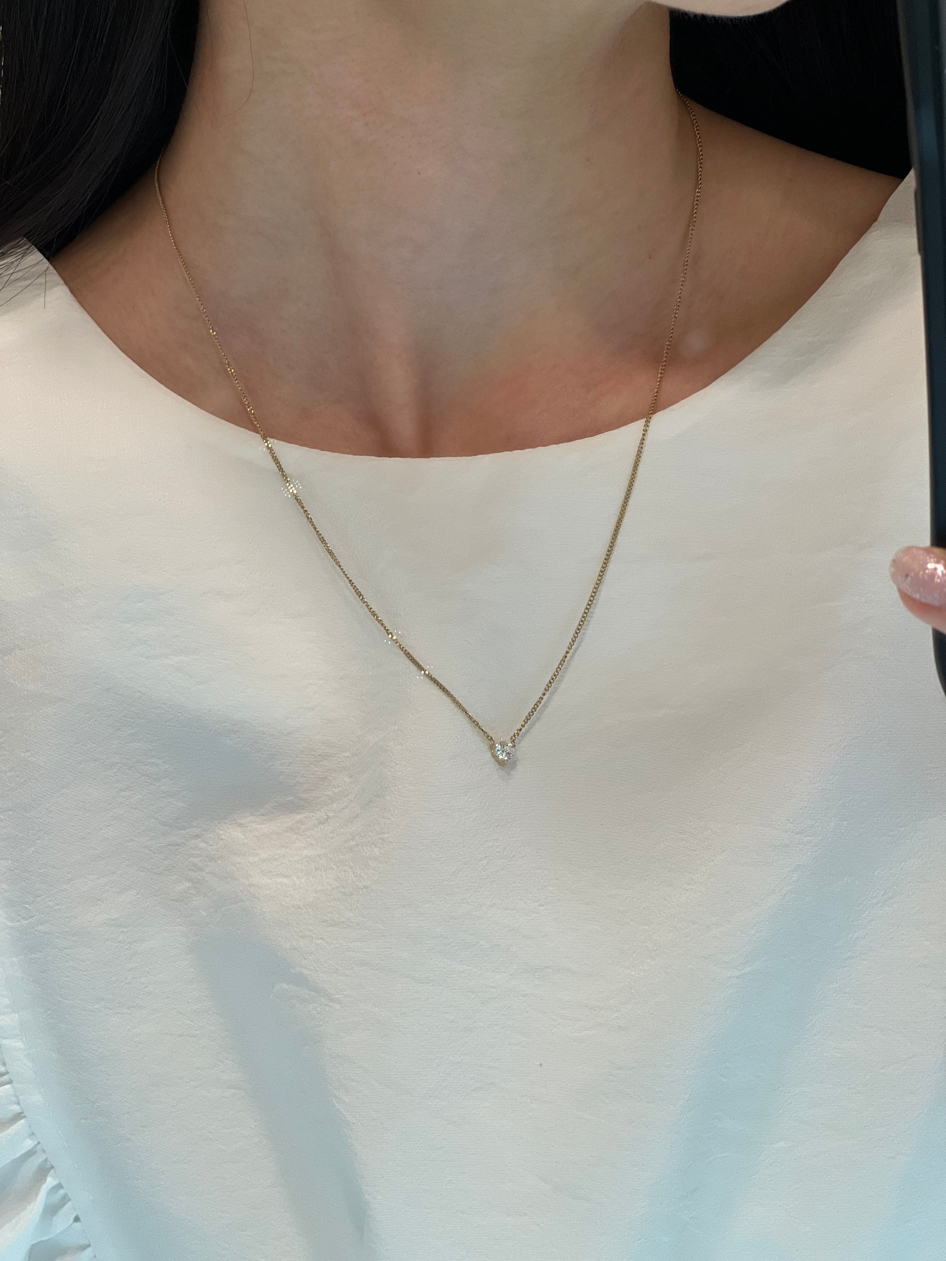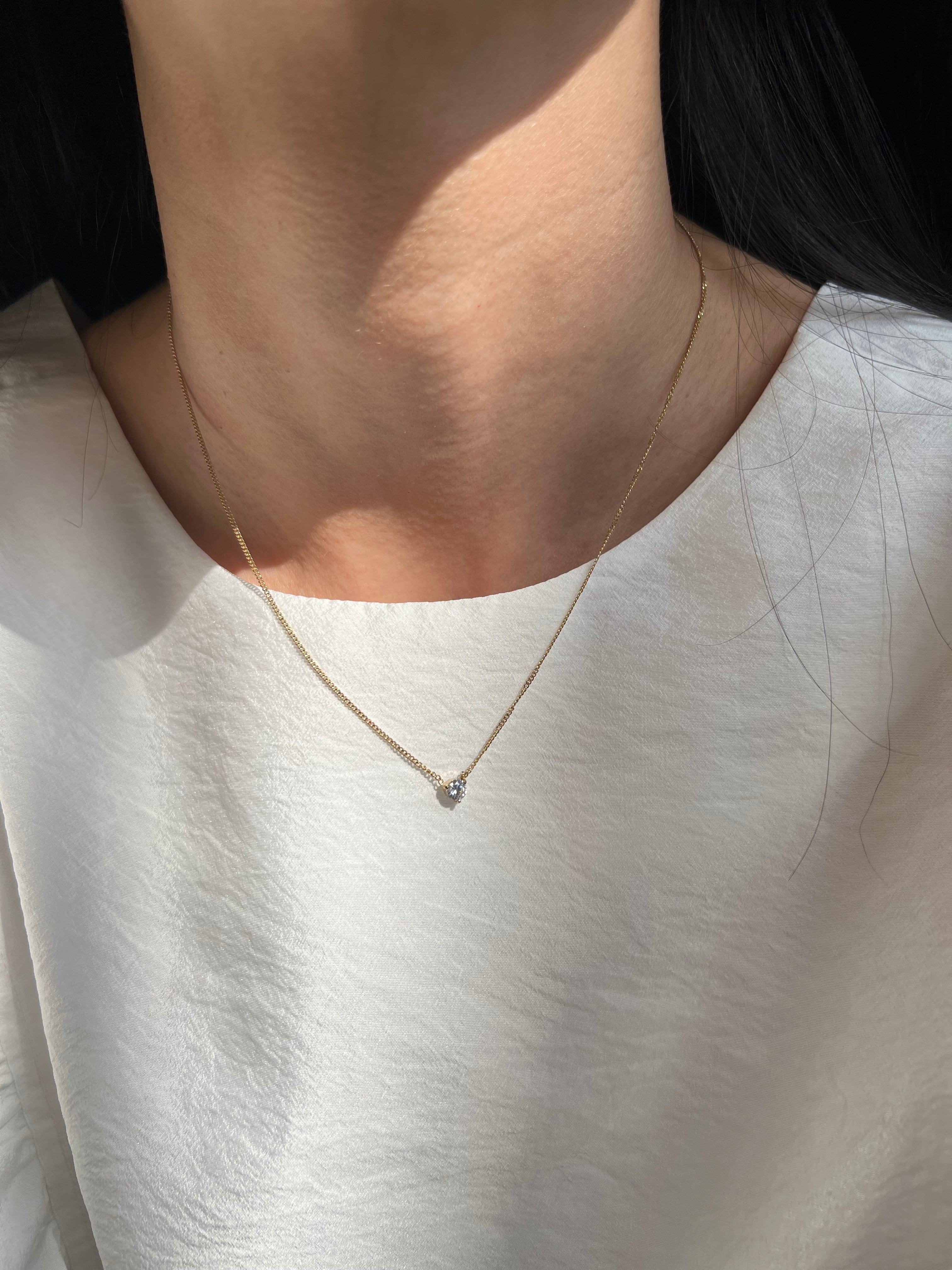 細身なチェーンに小ぶりな一粒ジルコニアをあしらった品のあるネックレス。