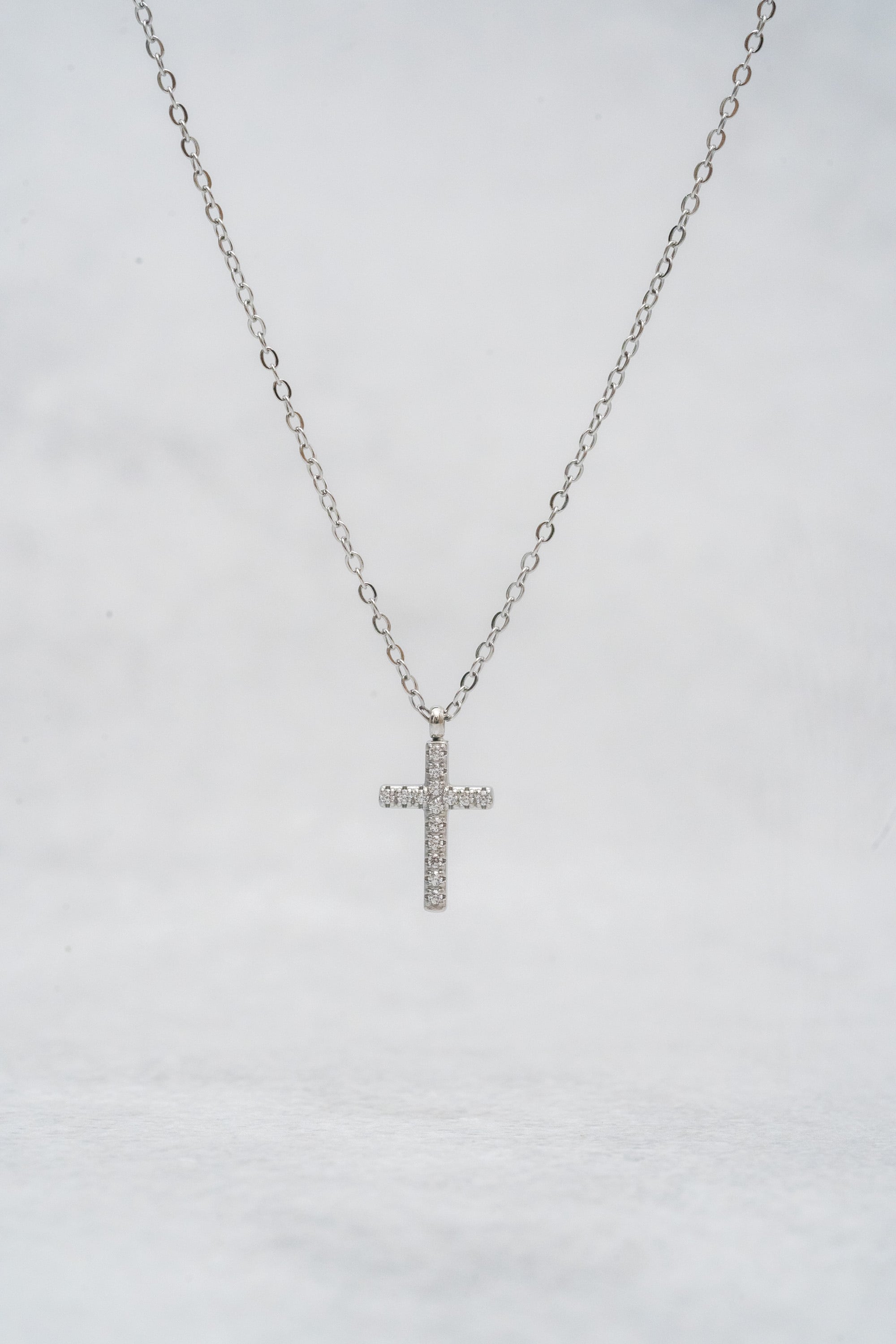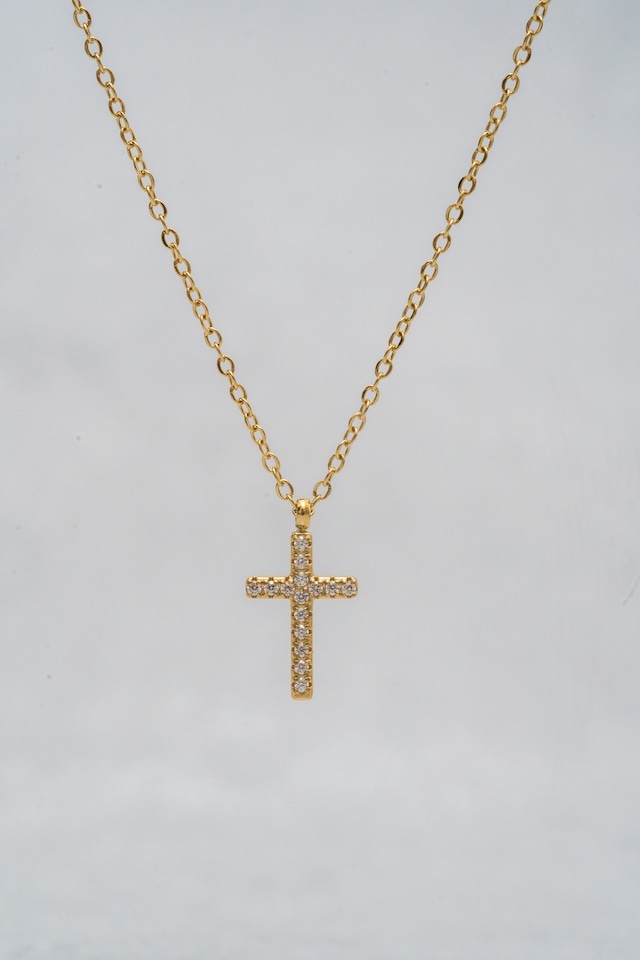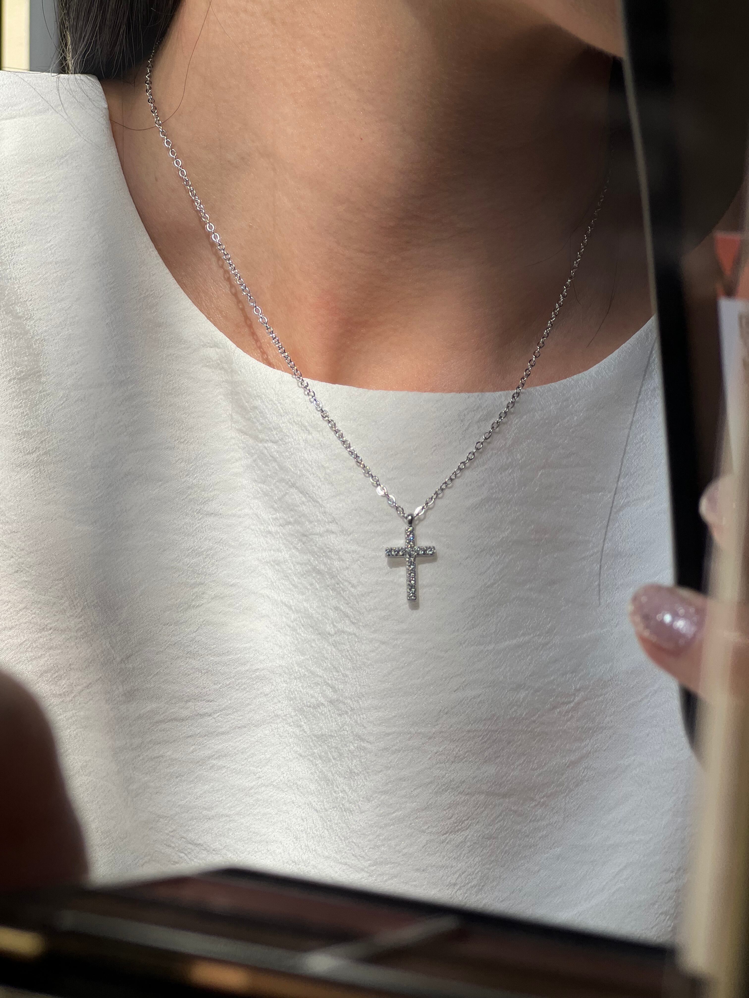主張しすぎない程よいサイズのクロスネックレス。シンプルチェーンとの重ね付けでも単品使いでも重宝できるアイテム。