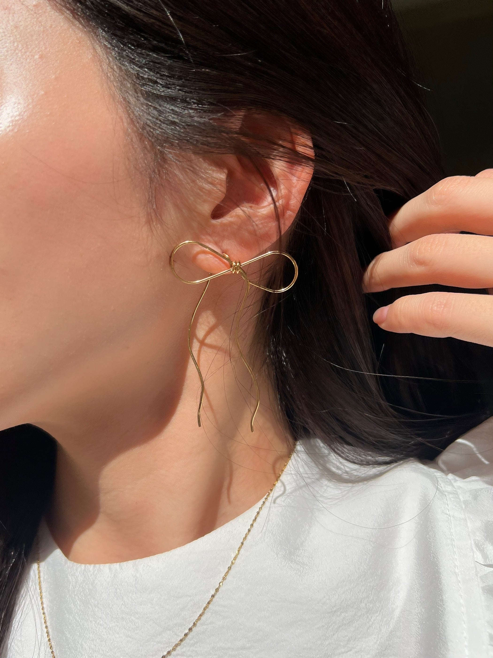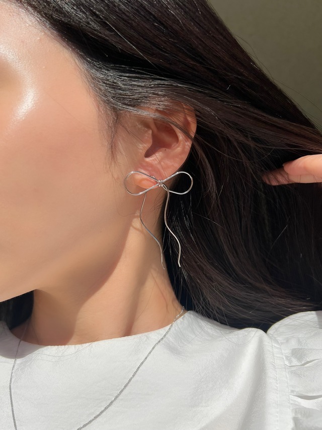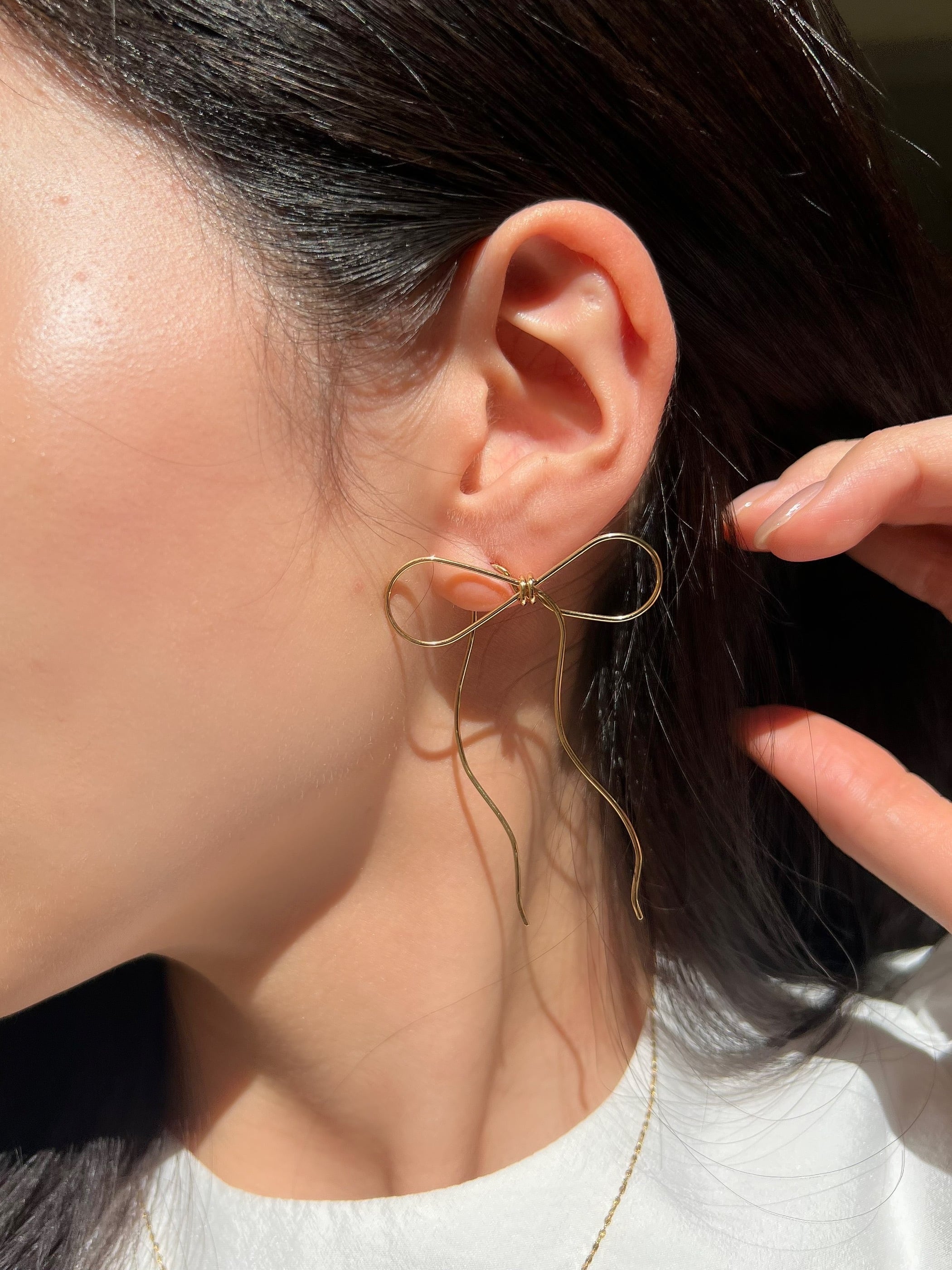 見た目のボリューム感とは相反し、耳が疲れにくいエアリーなリボンピアス。