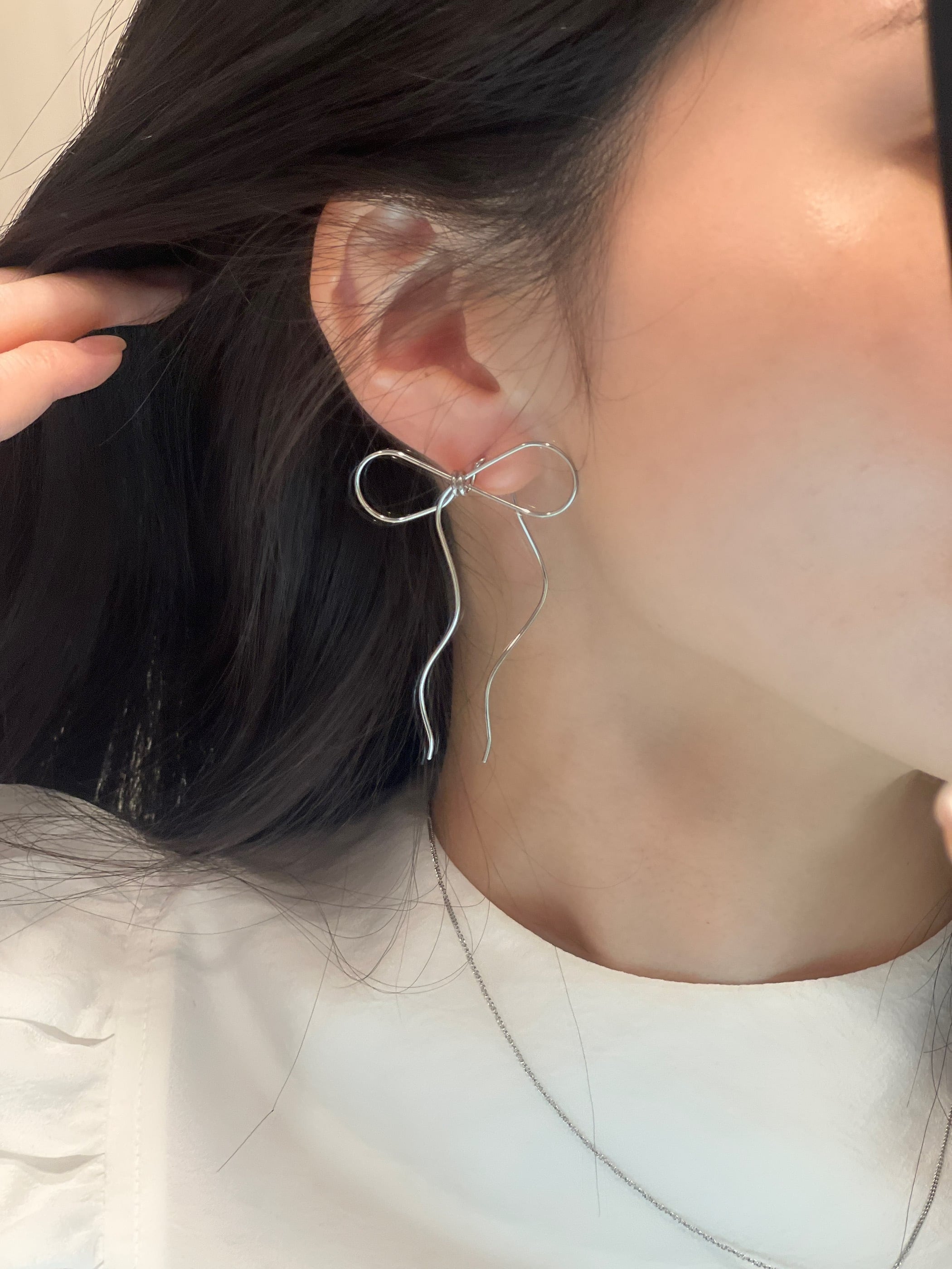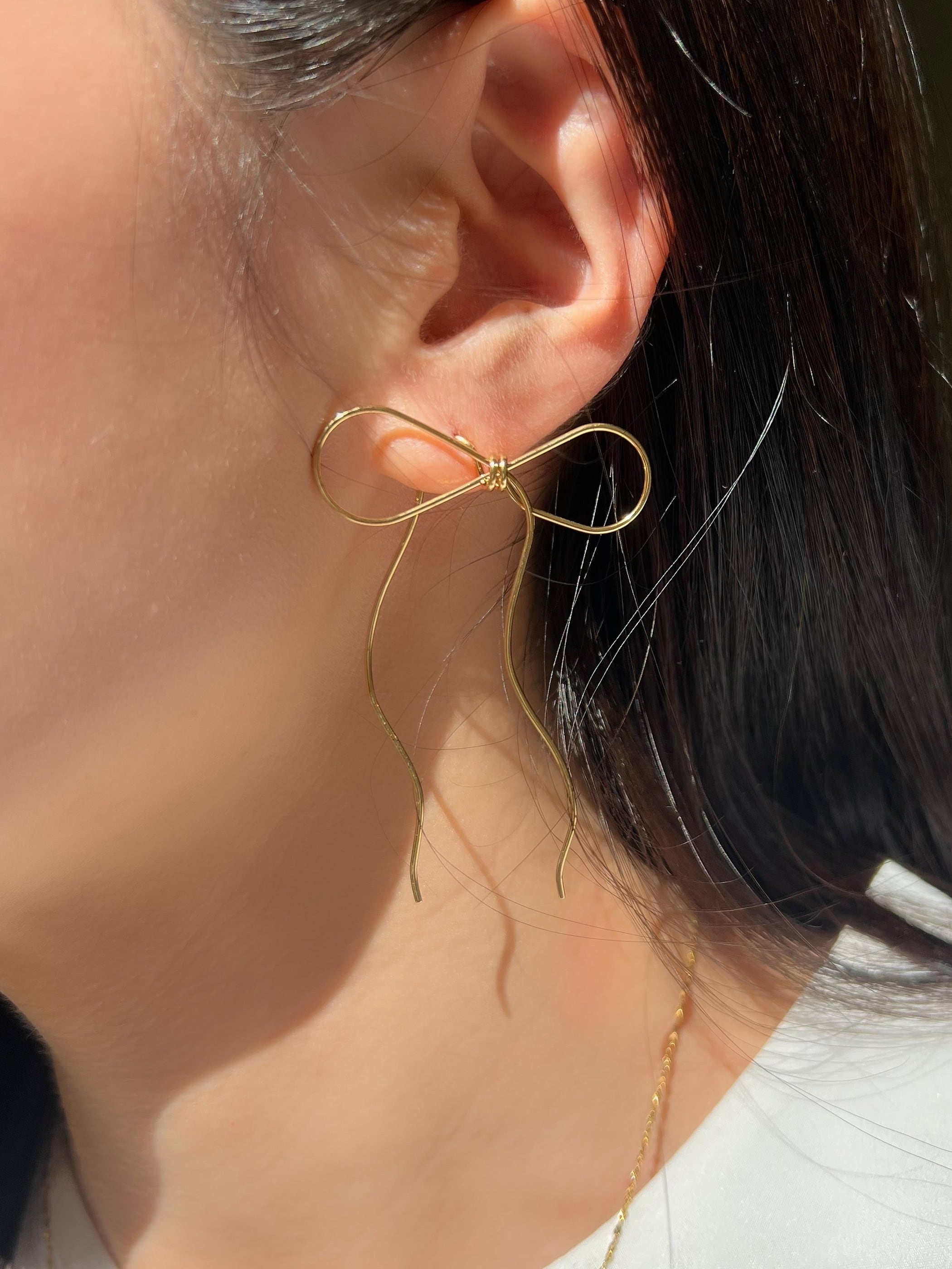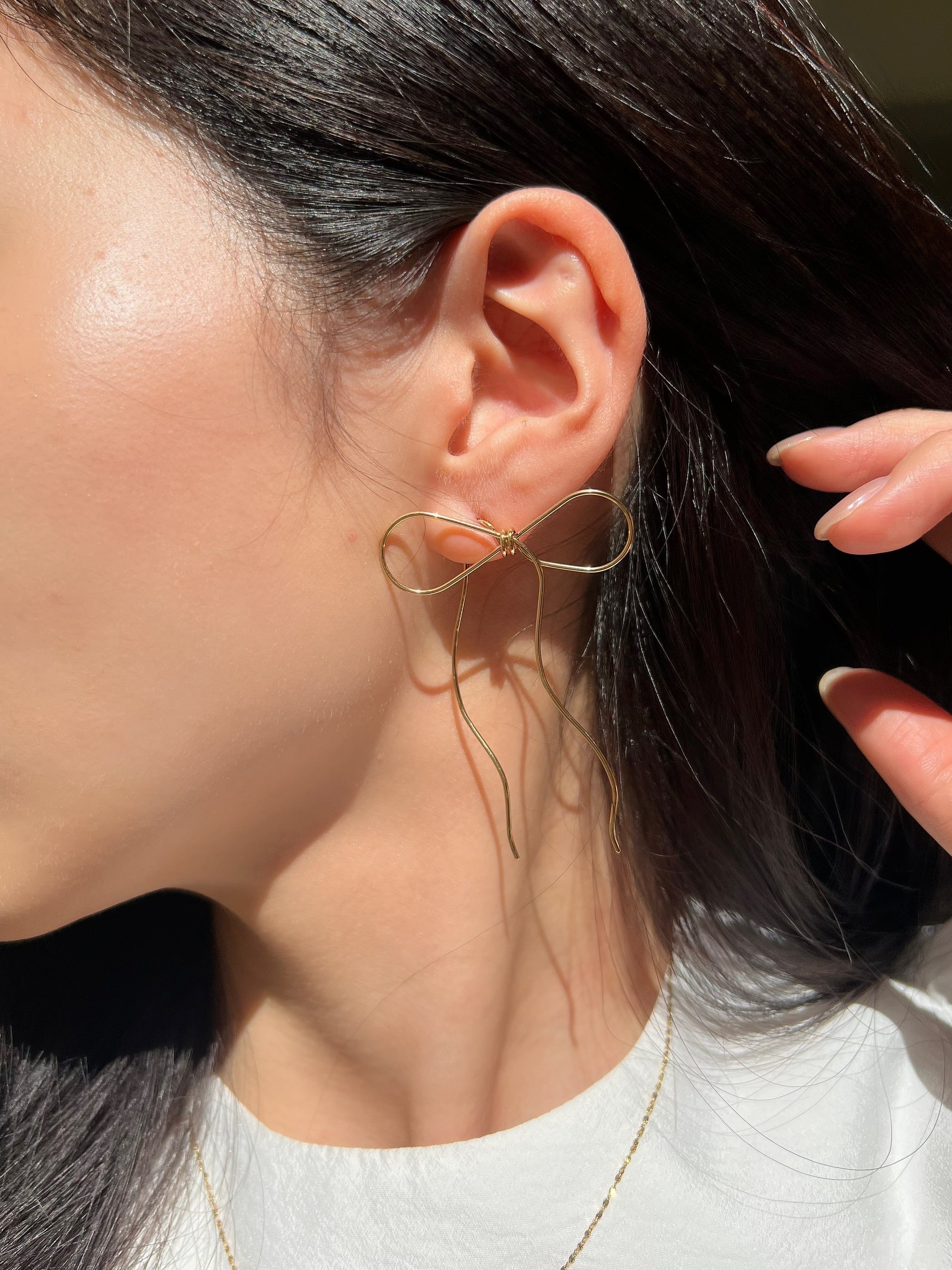 見た目のボリューム感とは相反し、耳が疲れにくいエアリーなリボンピアス。