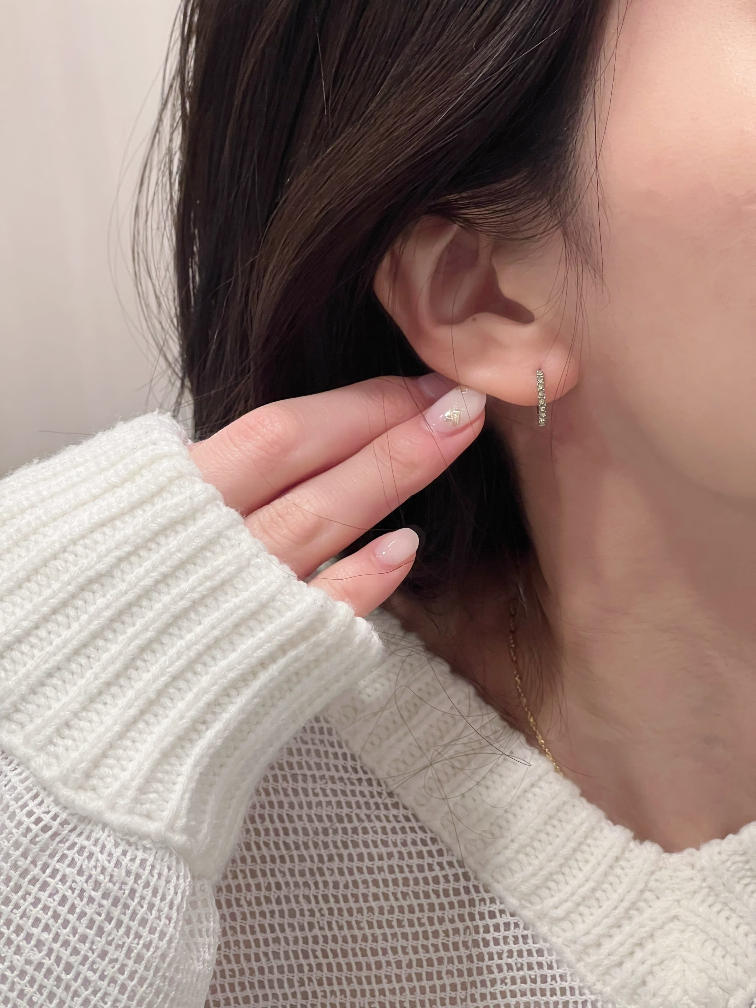 シンプルなフープピアス。