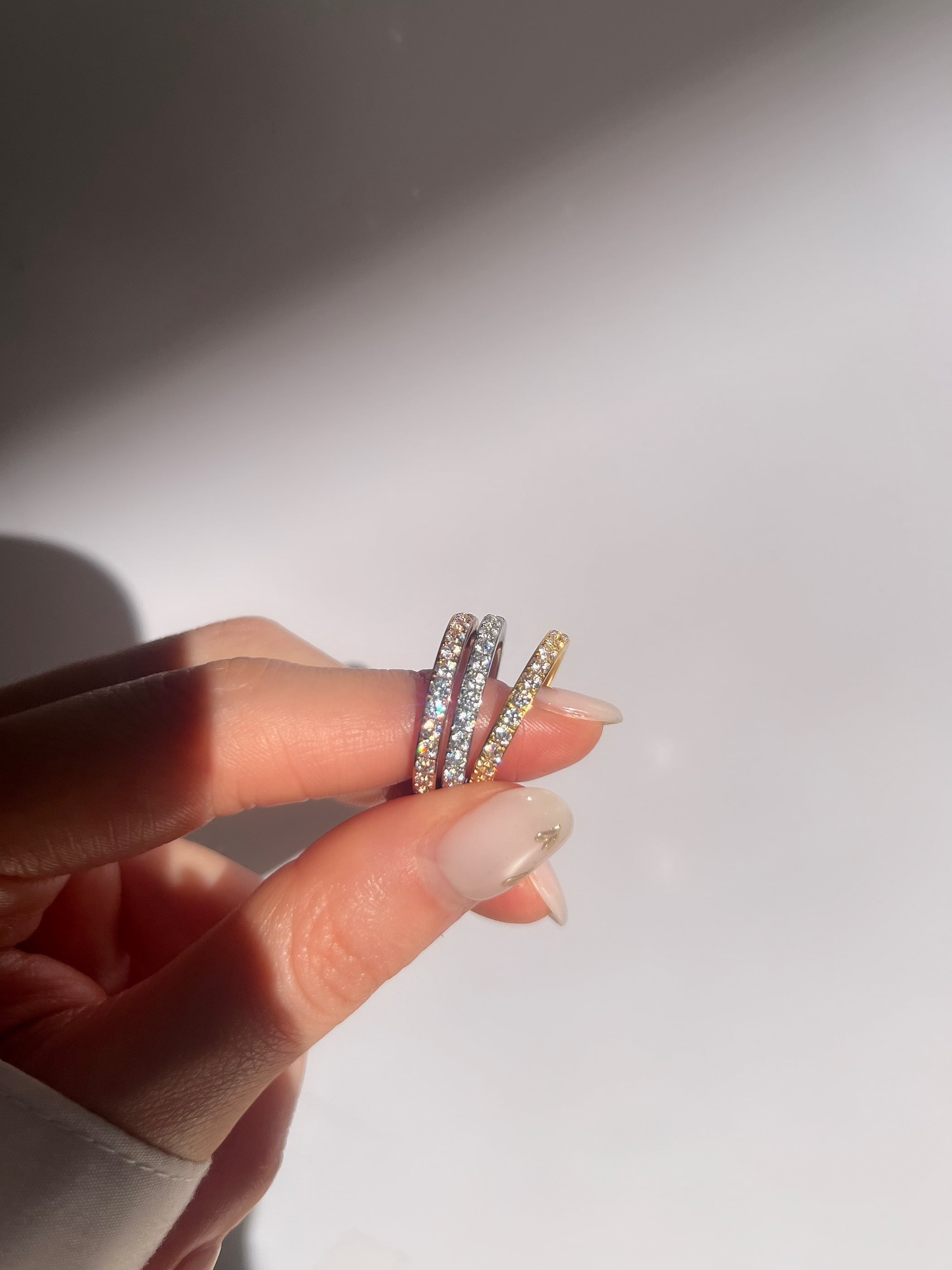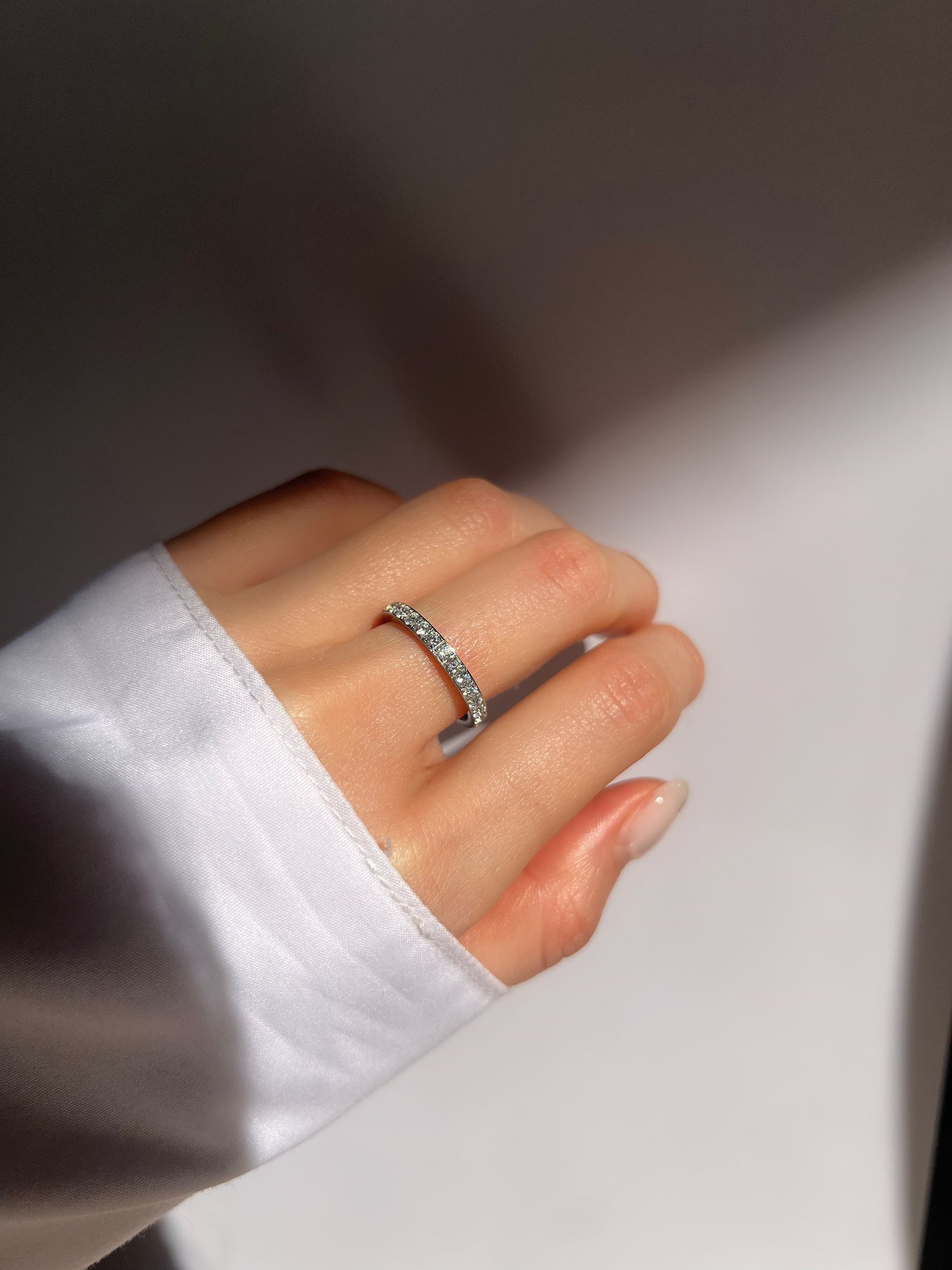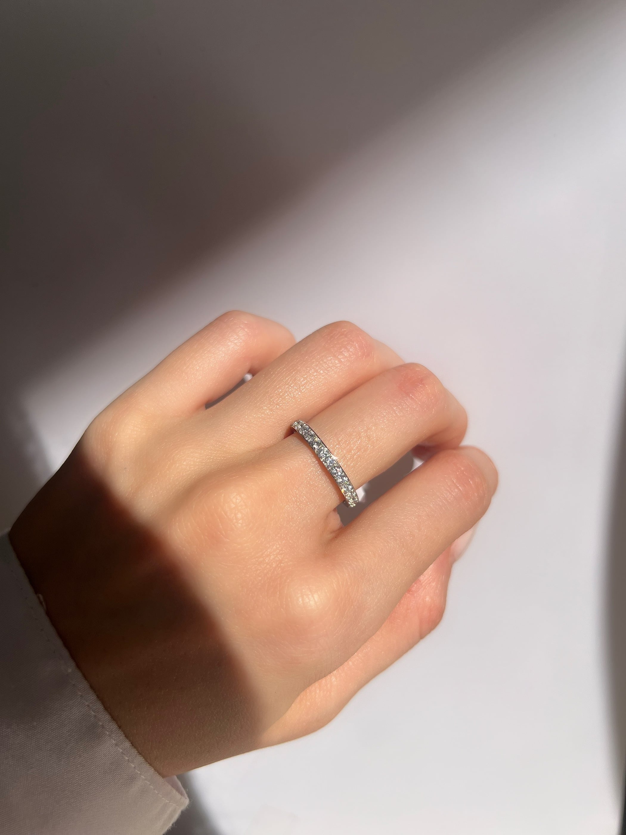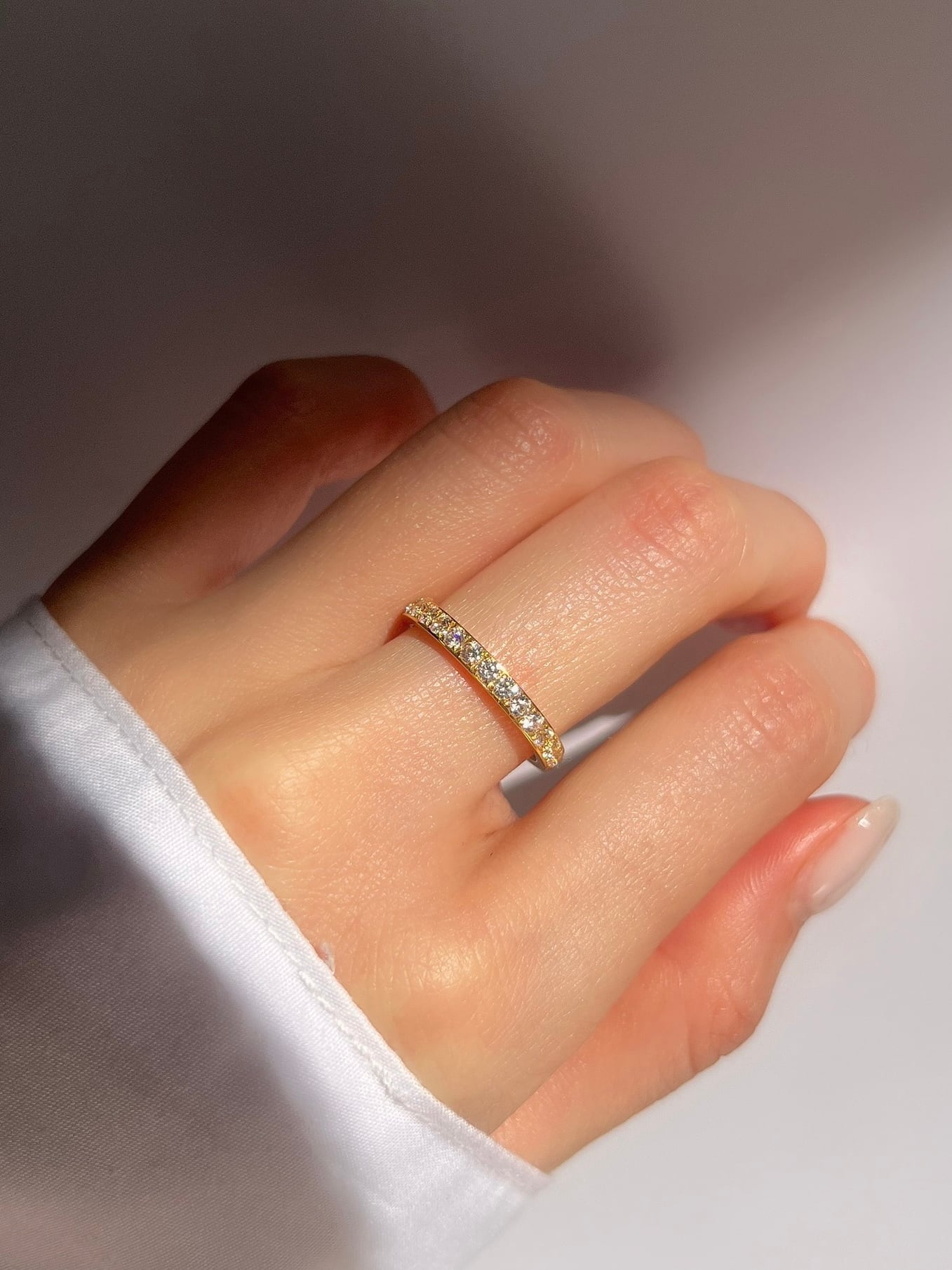 360°隙のないフルエタニティリング。光が当たることでキラキラと指先を華やかにしてくれルアイテムです。